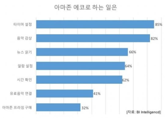 라이벌은 뒤늦게 등장한 구글 어시스턴트다. 알렉사는 더 많이 쓰이고, 구글 어시스턴트는 더 똑똑하다. 다른 인공 지능 비서로 애플 시리, MS 코타나, IBM 왓슨 등이 있긴 하지만 이들은 사업 모델이 다르다. SKT의 '누구'나 KT의 '기가 지니'는 아직 미숙하다.